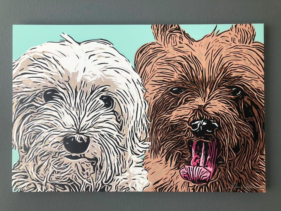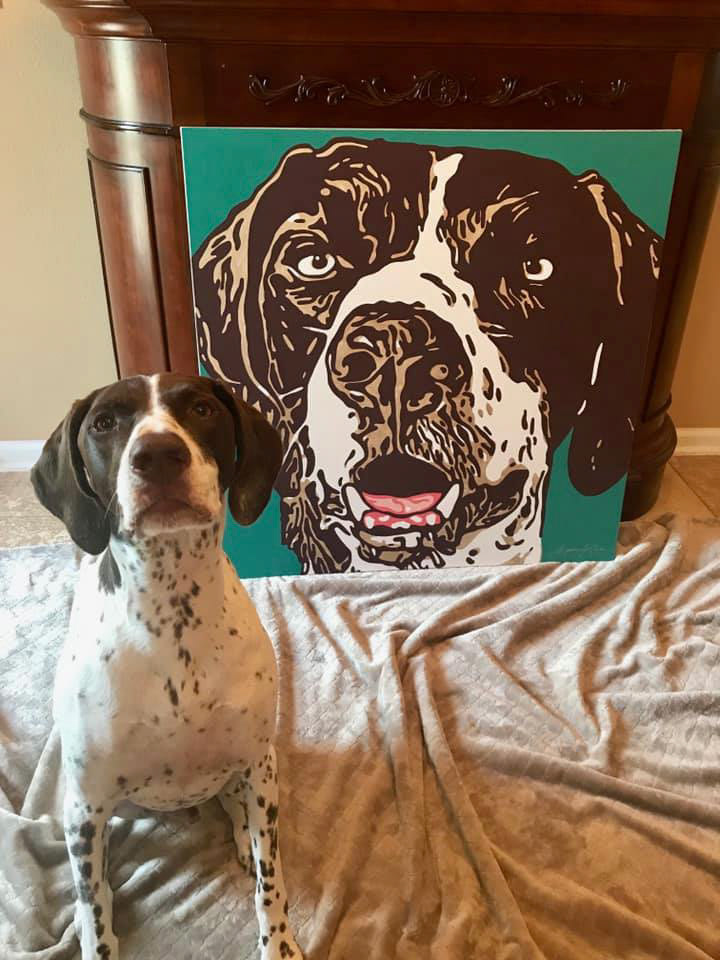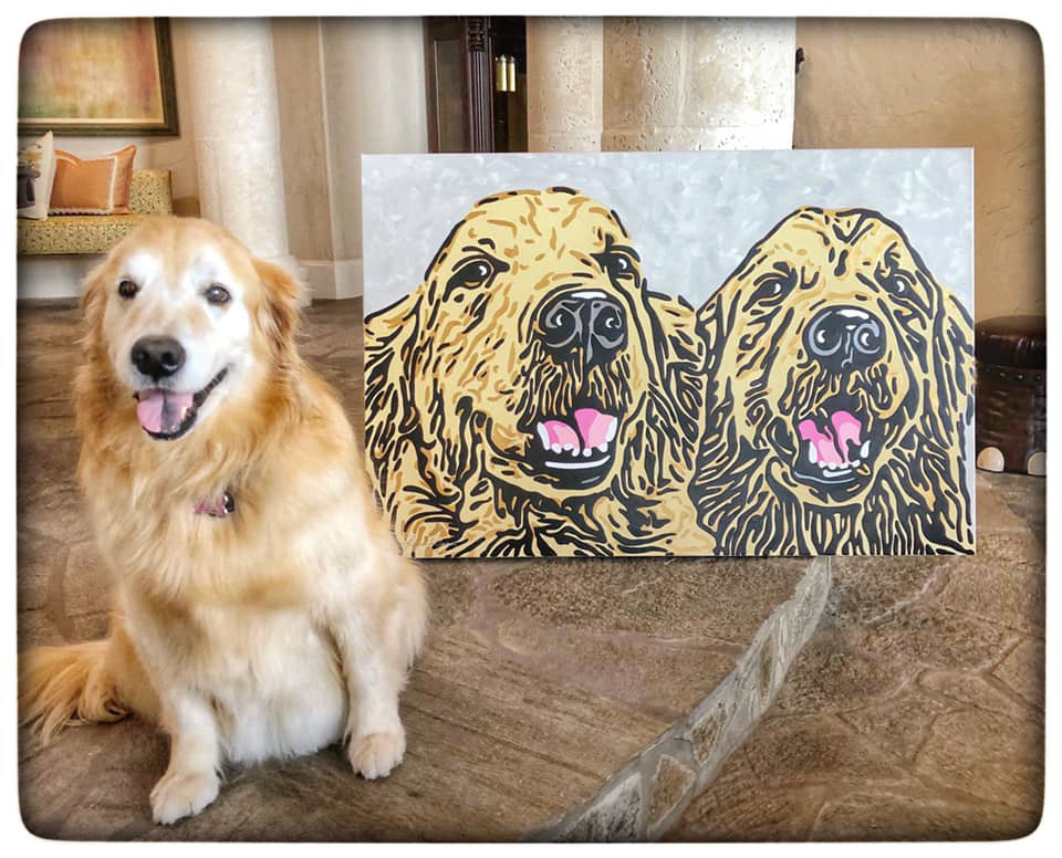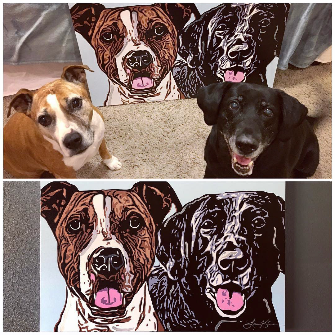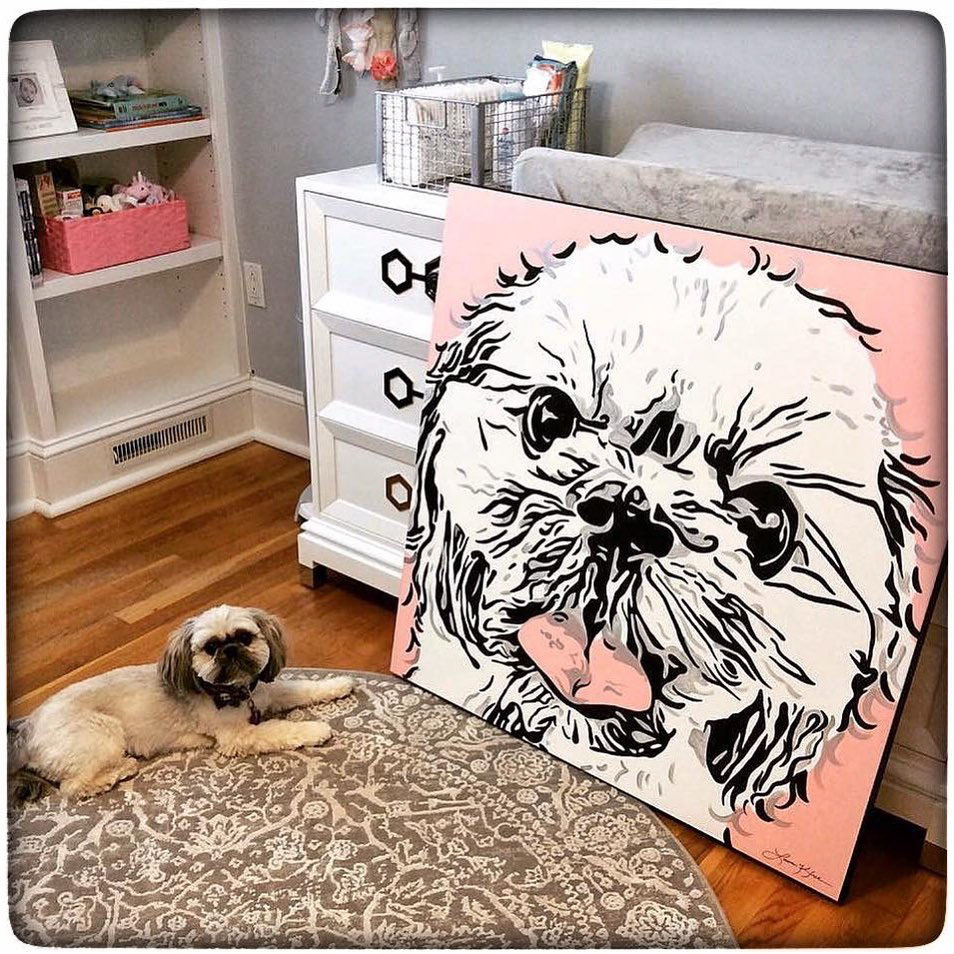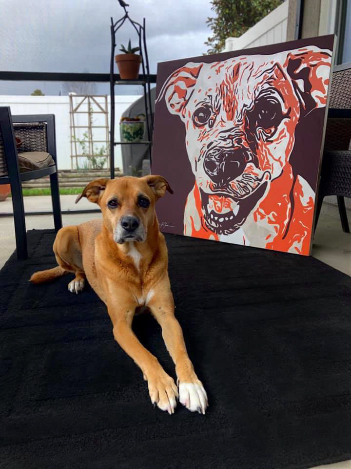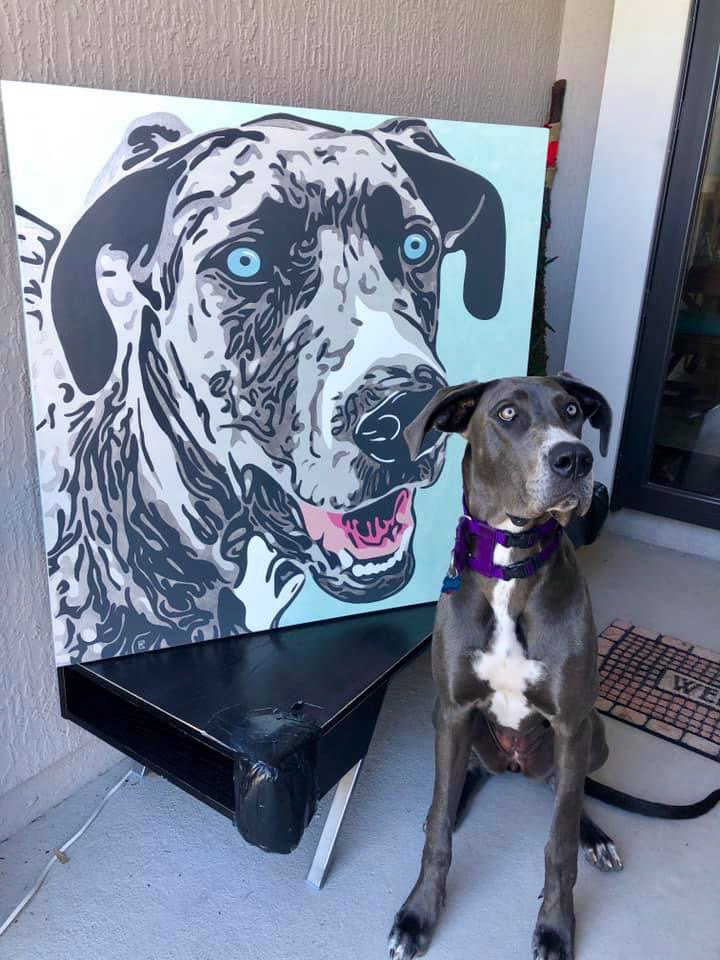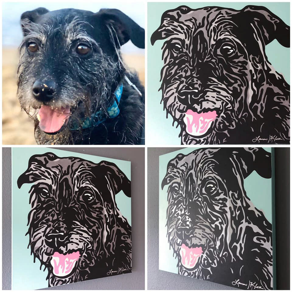 Knighthawk Design offers pet portraits digitally printed to canvas with hand painted embellishments. Please fill out the inquiry form below for more information.