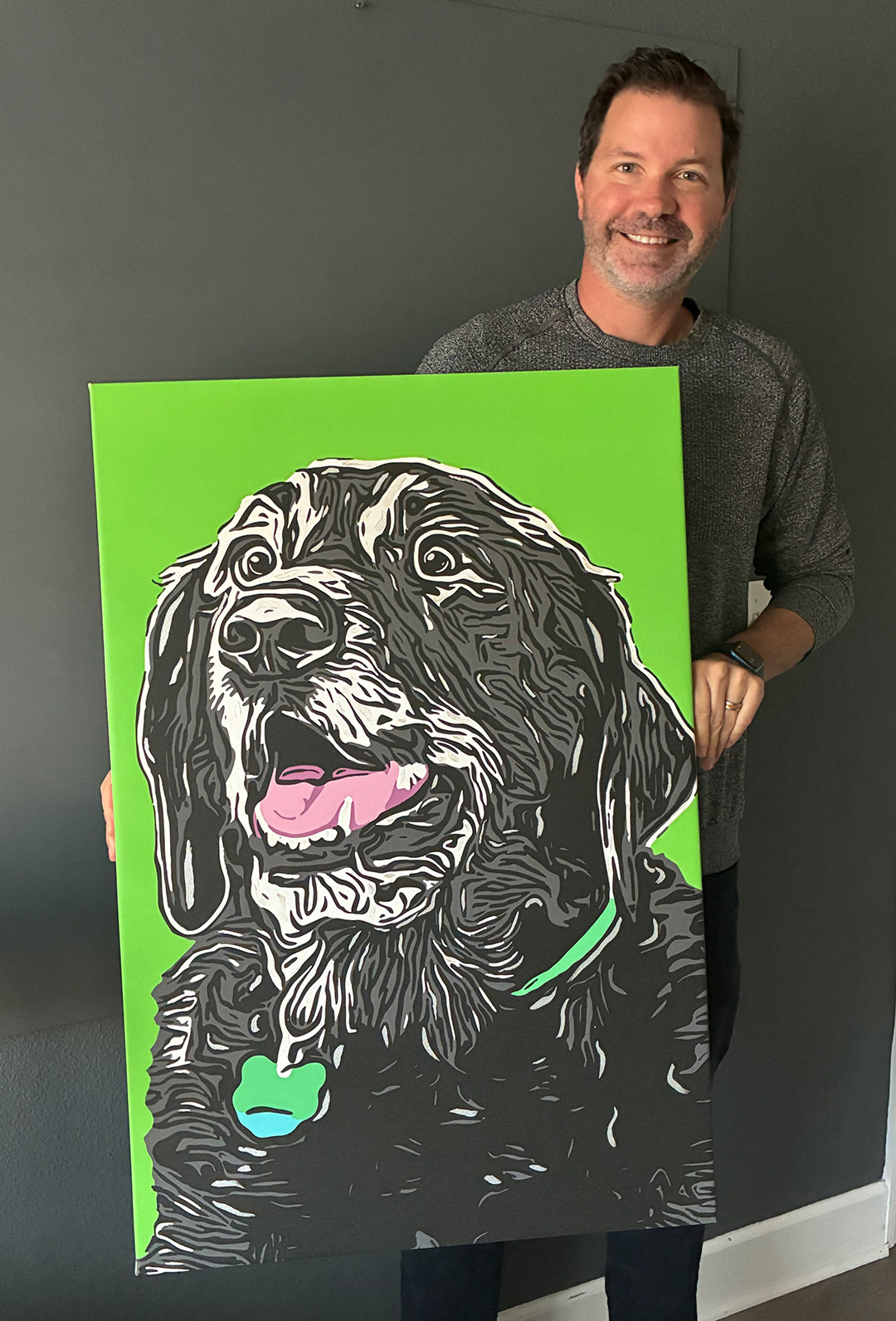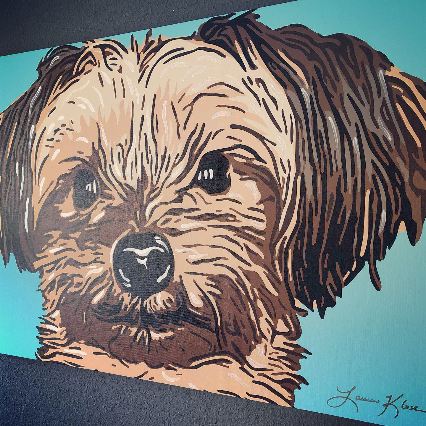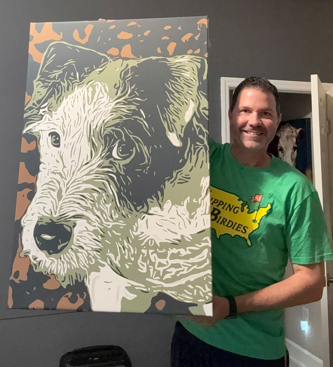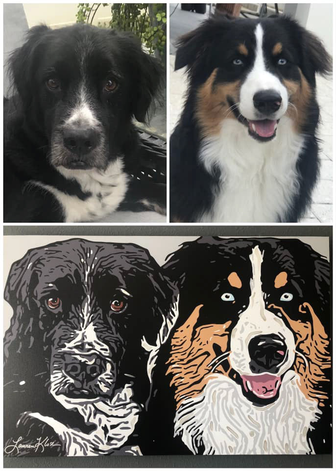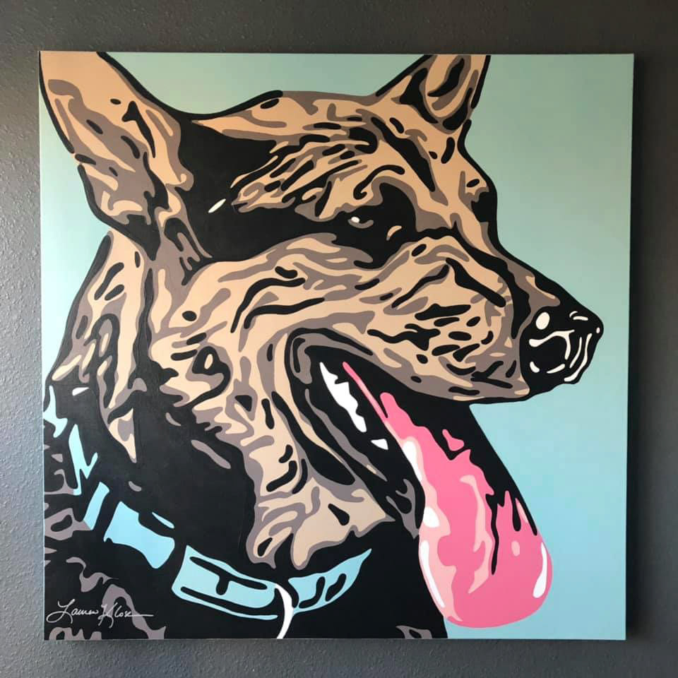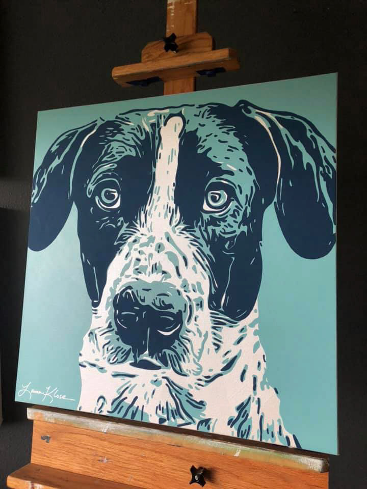 Knighthawk Design offers pet portraits digitally printed to canvas with hand painted embellishments. Please fill out the inquiry form below for more information.